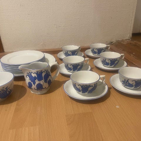 Raija Uosikkisen Arabialle suunnittelema posliininen Stella-astiasto tuotantovuosilta 1957-69. Erinomainen kunto kauttaaltaan, pinnat säilyttäneet kiiltonsa. Olleet vain juhlakäytössä ja nyt hyllytettyinä viimeiset n. 60 vuotta. Ainut kauneusvirhe kermakon suun alapinnan pieni lohkeama. Huomioitu reilusti hinnassa.