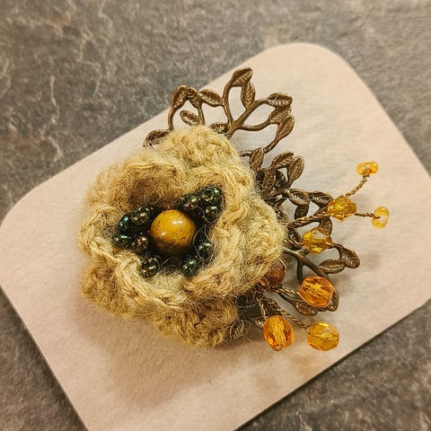 Rintaneula Kukkakoriste naisten koru, jossa on vihreä kukka ja koristeelliset lehdet.