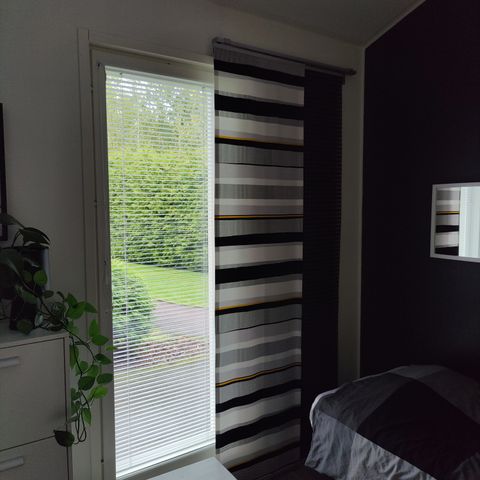 Käyttämätön kisko nk. japanilaisverhoille, joissa suorana riippuvat kangassuikaleet tms. liukuvat lomittain.