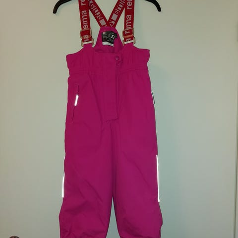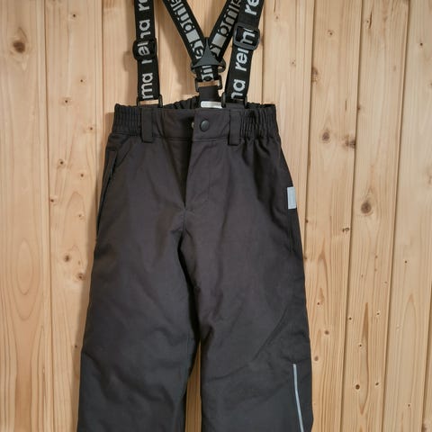 Vedenpitävät ja erittäin kestävät Reimatec Juoni toppahousut, joissa korkea vyötärö, henkselit ja säädettävät lahkeensuut.