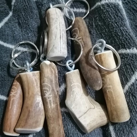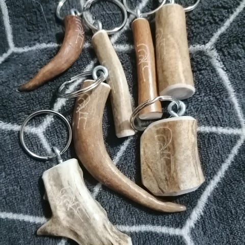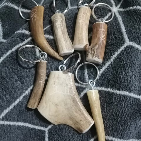 20 kpl erilaisia poronsarvesta valmistettuja avaimenperiä.