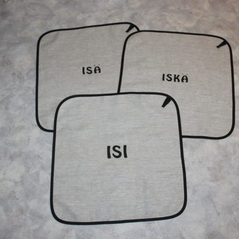 Uusi pellavasta ommeltu laudeliina/pefletti n.45x45cm, käsinpainettu "ukki", "pappa" ja "vaari" teksti.