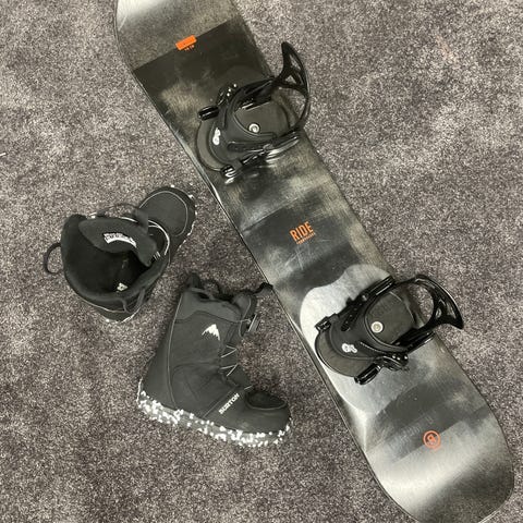 Burton 115cm lumilauta ja burton stiletto smalls siteet.