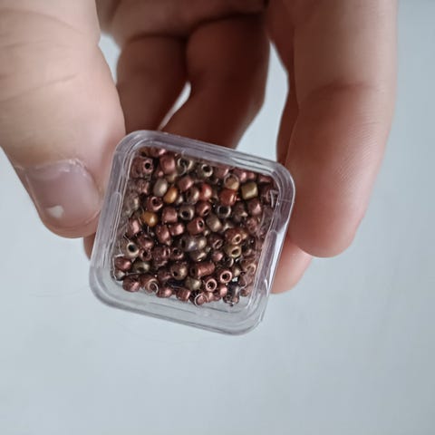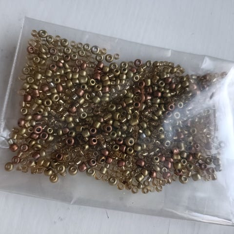 Myydään siemenhelmiä sekä valmis työ koristeeksi/purettavaksi. Hinta yhteensä 3 euroa.