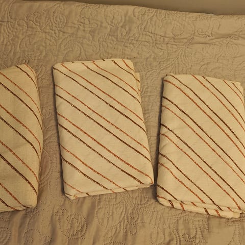 Tukevaa kangasta raidalliset verhot. Koko 230 cm. X 120 cm x 2 kpl