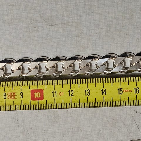 Erinomaisessa kunnossa oleva 925 hopealetju. 6mm leveä, 55cm ja 57g painoa. Leimat löytyy. Postitus onnistuu ja kulkeutuu lähialueille.