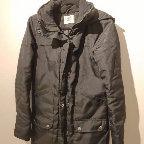Vero Moda Talvitakki mustassa värissä, naisten koko S. Takki on kevyt ja toppaustyyppinen, sopii kylmempään säähän. Materiaali on keinokuitu, joka tarjoaa suojaa tuulelta ja viimalta.Takki on uusi.
