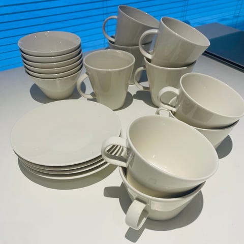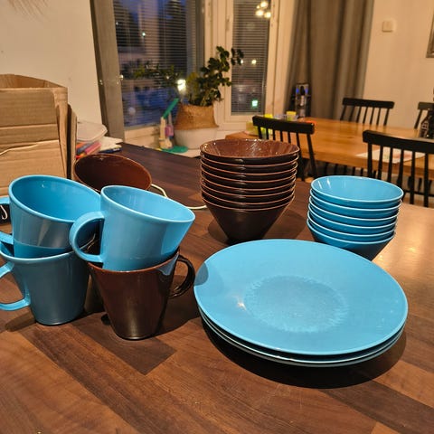 Myydään 3kpl Arabian KoKo sarjan mukeja 0,35dl ja niihin pienet lautaset (halkaisija 17cm). Väri valkoinen ja kunto hyvä. Vain nouto.