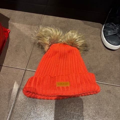 Vauvan M kokoinen, erittäin hyvä kuntoinen gugguun tupsupipo. Pesty käsin. Double furry