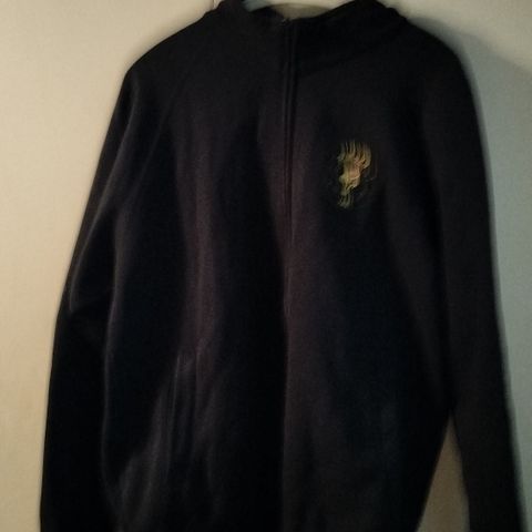 90-luvun fleece karvavuorella. Koko miesten L. Vyötäröllä on kiristysnauha. Hupun karvareunus on kärsinyt säilytyksessä, mutta sen saa vetoketjulla pois. Taskusta on hajonnut neppari, mutta se ei näy käytössä.