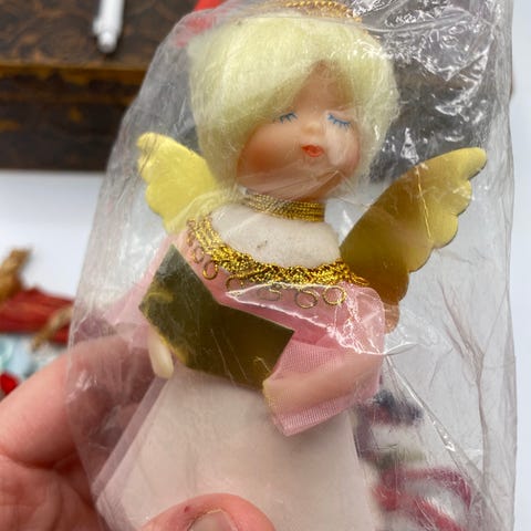 Enkelit, joulu, viulu, viulunsoittaja, soittaja, kori, vasu, joulukuusi, piparit, omena, retro, vintage, siipi, siivet, keräily, lelu, tyttö
