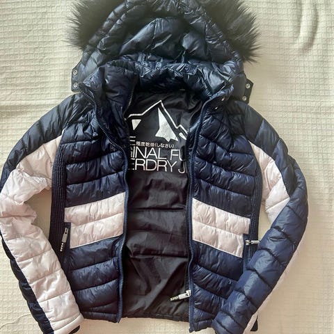Superdry Sports Puffer Series muotoinen ulkotakki naisille, koko S. Takki on musta ja valmistettu lämpimäksi puffer-materiaalista, joka sopii ulkokäyttöön. Vähän käytetty, siisti, ei pesty.