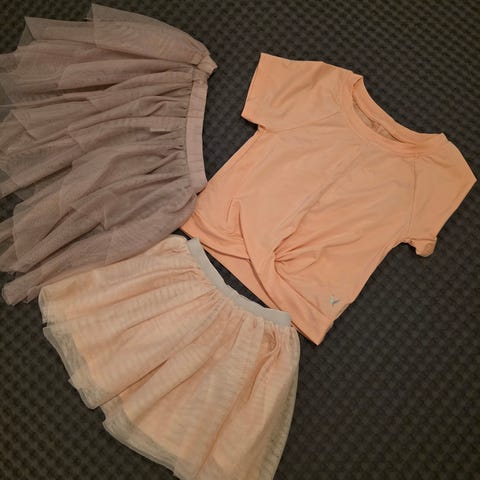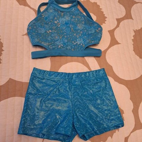 Värikäs lasten tanssi/ vomimisteluasu. Kihtalaisen joustavaa kangasta.