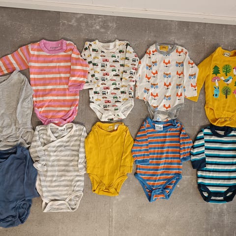 Tästä iso setti bodyja koko 50-56, enimmäkseen 56. Noin puolet ovat kietasubodyja ja muut tavallisia. 3 Name-it pitkähihaista paitaa. Hyvä setti pienelle vauvalle. Nouto tai tori diili. Merkit H&M, Lindex, Name-it jne.