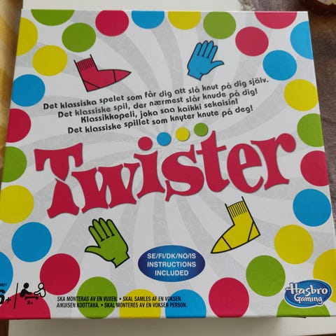 Lautapeli, jossa pelaajat asettavat käsiään ja jalkojaan värillille alustalle. Peli kehittää tasapainoa ja ketteryyttä, ja se sopii kaikenikäisille pelaajille. Laatikko kulmasta revennyt. Liikun alueella Lahti-Heinola-Mikkeli-Savonlinna-Parikkala tai voin lähettää Toridiilillä tai ilman
