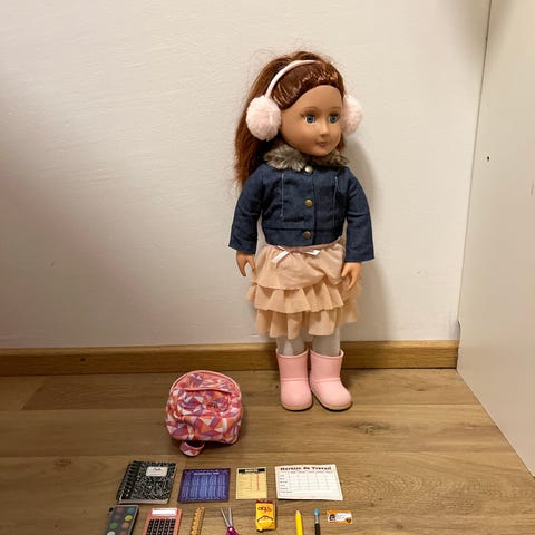 Myydään Our generation nukke, pyörätuoli, kävelykepit, kipsi.