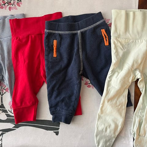 Jalkaterällisiä housuja, verkkareita ja sukkahousuja. Koko 50-56. Kasa vauvan sukkia. Nouto tai tori-diili.