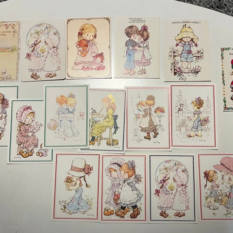 Kortit tavallisia postikortteja isompia eli 21cm x 15 cm. Kortteja on 12 kpl ja korteissa saksankielinen aforismi.