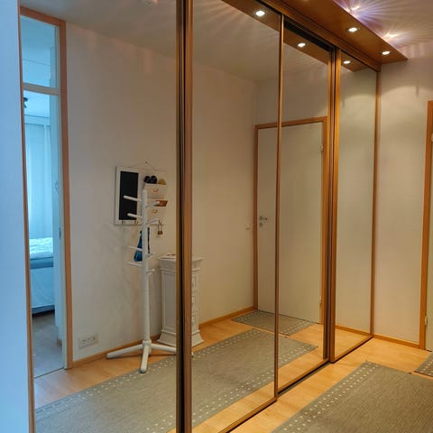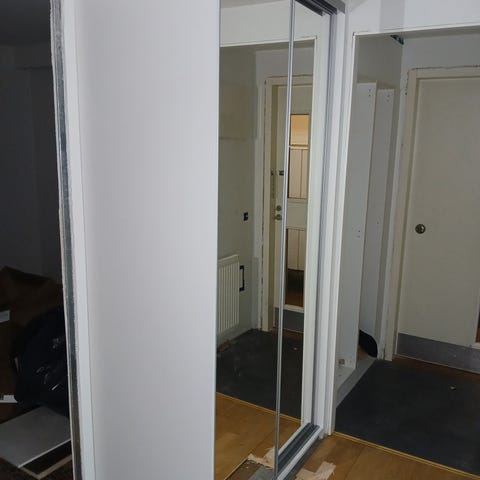 Hyvässä kunnossa 4kpl liukuovia. Kiskot ja listat tulevat mukaan. Korkeus 2510mm ja leveys 950mm