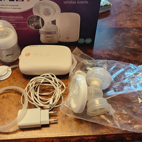 Käytettynä hankittu Aventin rintapumppu. Itsellä ollut käytössä 3kk. Toimii ja kukkuu normaalisti. Strelisoitu 07/25 käytöstä poistaessa. Pulloja ei tule mukaan. Mukaan saa Lansinoh äidinmaito pusseja.