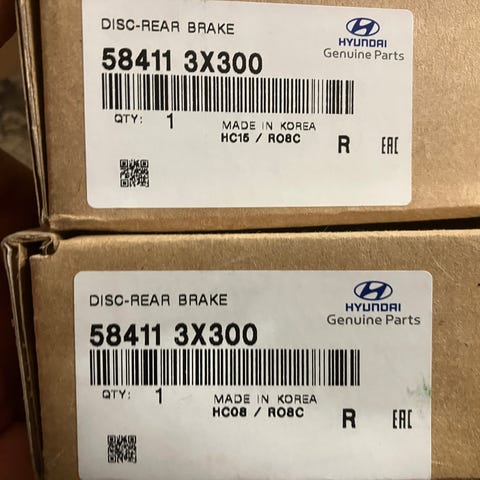 Hyundai/Kia kaluston alkuperäiset takalevyt. Parihinta.