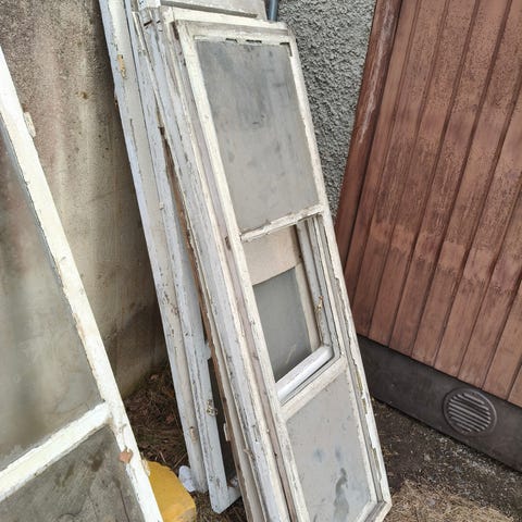 Ikkunat valmiiksi irrotettuja. Isot ikkunat 200-150€, pienet 100-75€. Useamman ostajalle voidaan sopia hinnasta erikseen.