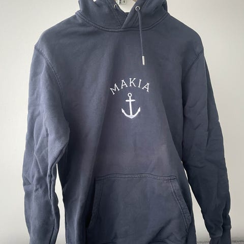 Makia vaaleanharmaa XL miesten collegehuppari on valmistettu 100% puuvillasta. Edessä punainen Makia-logo. Mallissa on huppu ja edessä tasku. Tuote on suunniteltu Helsingissä. Laadukas ja kuin uusi.