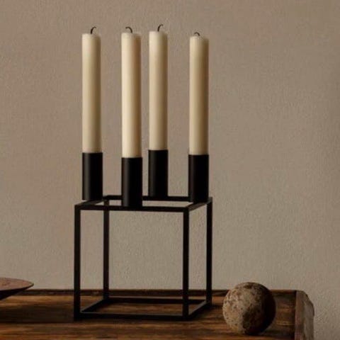Audo Copenhagen/by Lassen Kubus 4 kynttilänjalka, valmistettu teräksestä. Neljän kynttilän malli, moderni ja minimalistinen. Mitat leveys 14 cm, pituus 14 cm ja korkeus 20 cm.