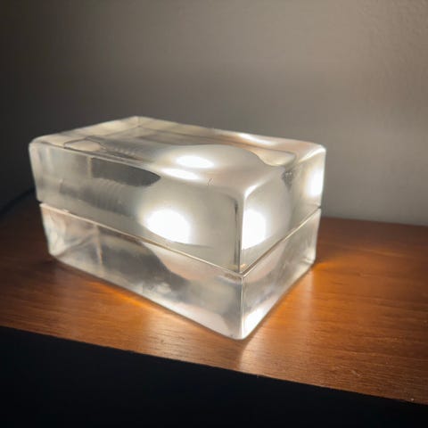 Vähälle käytölle jäänyt Harri Koskisen suunnittelema Block-valaisin. Nouto Ranta-Tampellasta.
