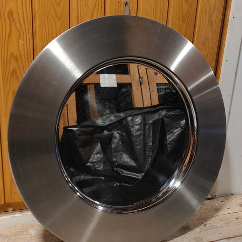 62 cm halkaisijaltaan Sarpanevan suunnittelema Opa teräslautanen. Nouto Hki Sörnäinen.