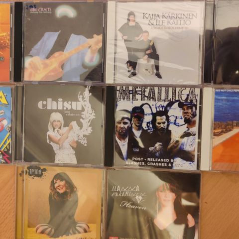 Myydään kotimaisten artistien cd-levyjä 3,00 euroa kappale. Kaikki cd:t kuunneltu ja todettu toimiviksi. Cd:ssä voi olla naarmuja & kansipapereissa jälkiä/omistuskirjoituksia, mutta cd-kotelot ovat ehjät. Postituskulut ostajalle ja noutokin sovittavissa.