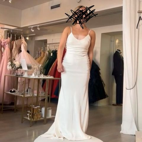 Ompelijalla kavennettu vyötäröltä ja käsivarsista hieman. Voi käydä sovittamassa Oulussa. Mekko pesty häiden jälkeen. Helmassa hieman nukkaisuutta, mutta ei merkittävästi.