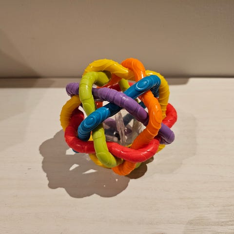 Playgron hauskassa helistimessä on purulelu, ja siitä on helppo pitää kiinni. Viihdyttävä ja käytännöllinen lelu vauvallesi!