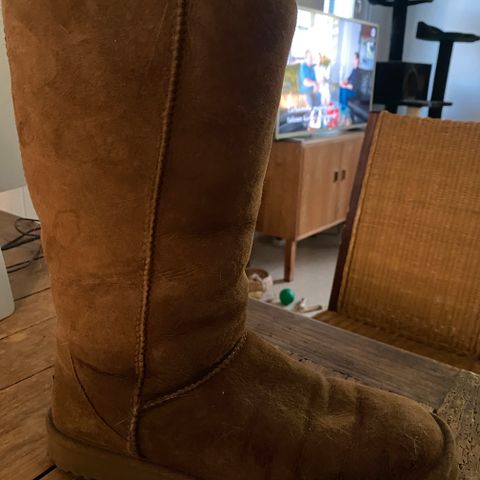UGG Saappaat koko 39, ruskeat. Saappaat on valmistettu mokkanahasta ja sisävuori on karvainen, mikä tarjoaa lämpöä ja mukavuutta. Sopivat kylmiin olosuhteisiin ja arkikäyttöön.