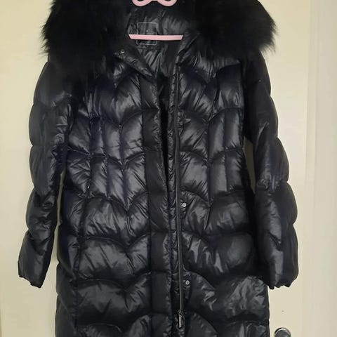 Käyttämätön kevyttoppatakki koko noin 38-40, kiiltäväpintainen, väri on tummansininen