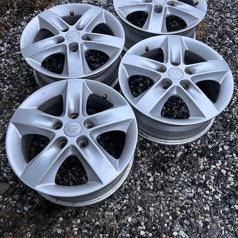 Alkuperäiset 16” Kia peltivanteet huonoilla kesärenkailla. Mukana myös pölykapselit.