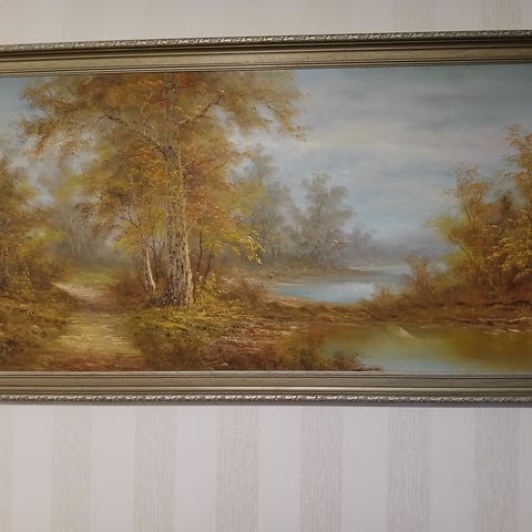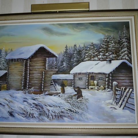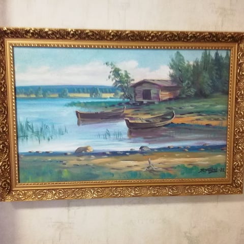 Tuntematon taiteilija, maisemamaalaus, järvimaisemaa. Maalaus on 40-luvulta ja ostettu Oulun galleriasta yli 20 vuotta sitten. Koko 61 × 53. Kehykset hienoa käsityötä. Signeerausta ei löydy. Muuton vuoksi myyntiin. Postitus ostajan kustantamana erittäin hyvin pakattuna.