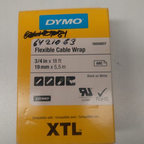 Pitkä tuotenimi DYMO XTL 19mm monikäyttöinen vinyylitarra, musta keltaisella