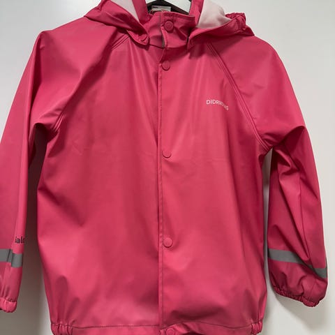 Myydään kuvan Didricksonin sadetakki koossa 130. Takin keskimmäisen napin vastakappale puuttuu (kts.kuva). Ei häiritse käyttöä tai näy käytössä, muuhen hyvä kunto.