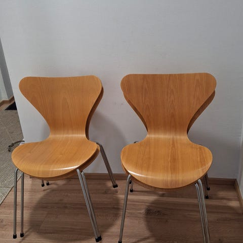 Myydään 2 kpl Arne Jacobsenin Fritz Hansen tuoleja yhteishintaan