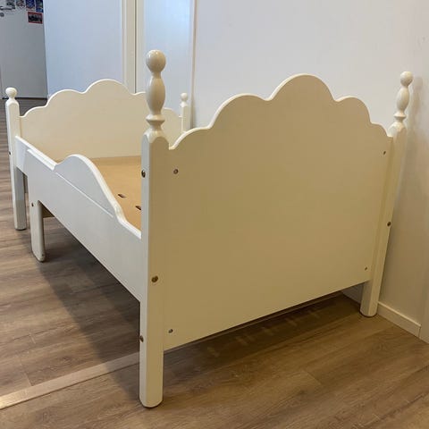 Vaaleanpunaiset Kidset jatkettavat lastensängyt: Ihanat vaaleanpunaiset tyttärieni käytössä olleet Kidset-kalustesarjan täyspuiset jatkettavat lastensängyt, joissa piparkakkumainen kaunis päätyjen muotoilu ja kullanväriset koholla olevat prinsessojen kruunukoristeet. Korkeus päädyn keskeltä lattiaan 80 cm. Jatkettavan sängyn pituus on säädettävissä vetämällä 118 cm - 198 cm välillä. Sänkyjen ovh kappalehinta uutena 394 euroa ja koristeet maksavat erikseen. Myynnissä kaksi samanlaista sänkyä (toisessa irrotettava sivulaidan koroke, toisessa kiinteä. Sängyt ovat puuosiltaan ja maaleiltaan hyvässä kunnossa. Kidset-kalustesarjaa myy mm. Suomikaluste, jonka sivuilta voi tarkistaa sarjan hienojen kaulusteiden ovh-hinnat ja muut kauniin kalustesarjan tuotteet. Myynnissä Lohjalla, mutta kulkeutuu ilman postimaksua omien menojen mukaan ainakin Espoon Ikealle ja Espoon keskukseen. Myös postitus onnistuu. Hp. 200 euroa/kpl