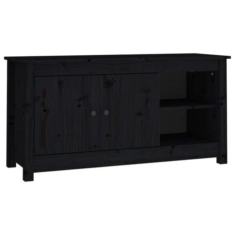 Tämä puinen TV-taso, jossa on runsaasti säilytystilaa, on käytännöllinen lisä olo- tai makuuhuoneeseen.
