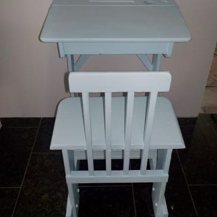 Täysin kunnostettu kansakoulun antiikkinen täyspuinen pulpetti. Päävärit vaaleanpunainen ja puhtaanvalkoinen. Hienossa kunnossa sekä puuosiltaan että maaleiltaan. Korkeus edestä 95 cm, korkeus istuimen selkänojan yläpinnalta maahan 94 cm, istuinkorkeus 58 cm ja leveys leveimmältä kohdalta 61 cm. Kaunis aikaa kestävä huonekalu seuraavan prinsessan käyttöön omien lasteni kasvettua aikuisiksi. Myynnissä Lohjalla. Hp. 200 euroa