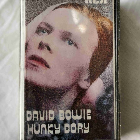 David Bowien Low-kasetti. Soi hyvin, mutta kasetin ulkokuori, kotelo ja kansipaperi ovat kuluneita.