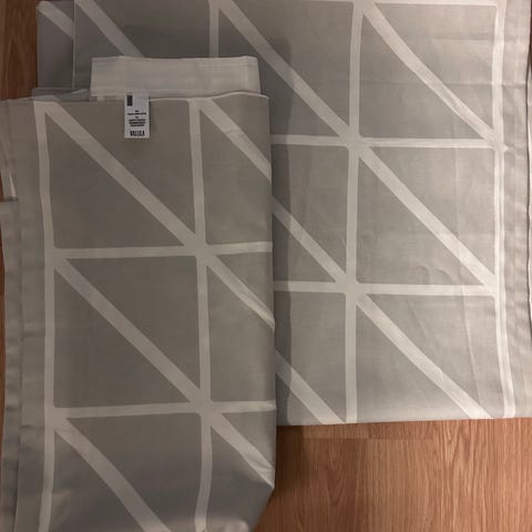 Uudenveroiset verhot. Väritys musta-harmaa-valkoinen. Ei pesuraitoja eikä haalistumia. 2 kpl