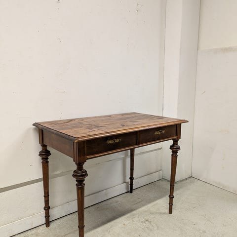 Myydään vanha hyväkuntoinen pähkinäpuinen massiivinen kirjoituspöytä. Paischeff tyyli 1800 luvun loppupuolelta. Pöytälevy on irroitettavissa kuljetusta varten.