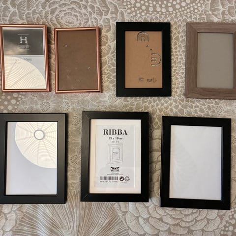 Kehykset kuville. koko 18x18cm, sekä 23x17cm, Kunto molemmissa hyvä. Hinta 3e/kpl tai molemmat yht.5e