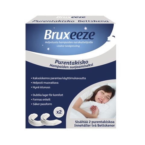 EKULF NightGuard Universal Bettskena on purentakisko, joka suojaa hampaita yöllä. Malli on universal ja sopii useimmille, koko One Size. Väri valkoinen. Tuote sisältää säilytyskotelon. Valmistettu muovista. Sopii käytettäväksi hampaiden purennan suojaamiseen ja hammaskipujen ehkäisyyn.