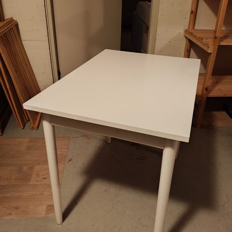 Myydään itse tehty ruokapöytä (hox tuolit ei kuulu kauppaan). Kansi hiottua ja käsiteltyä lankkua, kaipaa uusintakäsittelyn. Lakka kulunut paikoittain ja kannessa parissa kohtaa tussin jälkiä lasten toimesta. Jalat mustat rautaiset.
