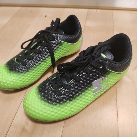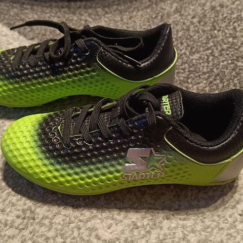 Starter lasten jalkapallokengät, koko 31. Värit vihreä ja musta. Sopivat jalkapalloon ja ulkokäyttöön. Kengissä on nastapohja, joka tarjoaa hyvän pidon nurmikentällä.